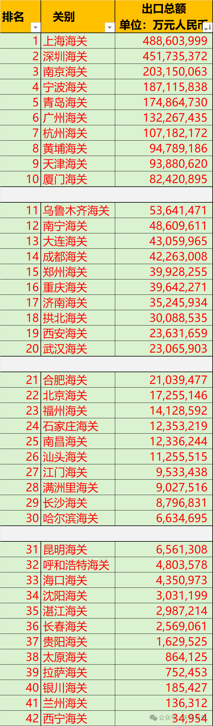 这前三不得不说,就是硬啊!进出口全部前三好了,出口完整排行