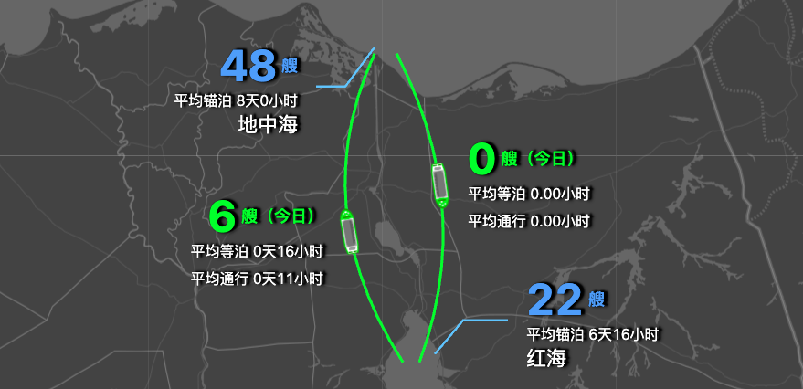 截至3月13日,苏伊士运河(地中海方向)锚泊48艘,平均锚泊时长8天0小时,今日通6艘,平均等泊16小时,平均通行11小时;