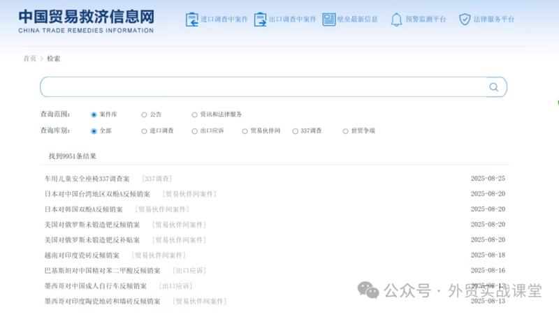 产品反倾销查询网址:https://cacs.mofcom.gov.cn/cacscms/view/searchList