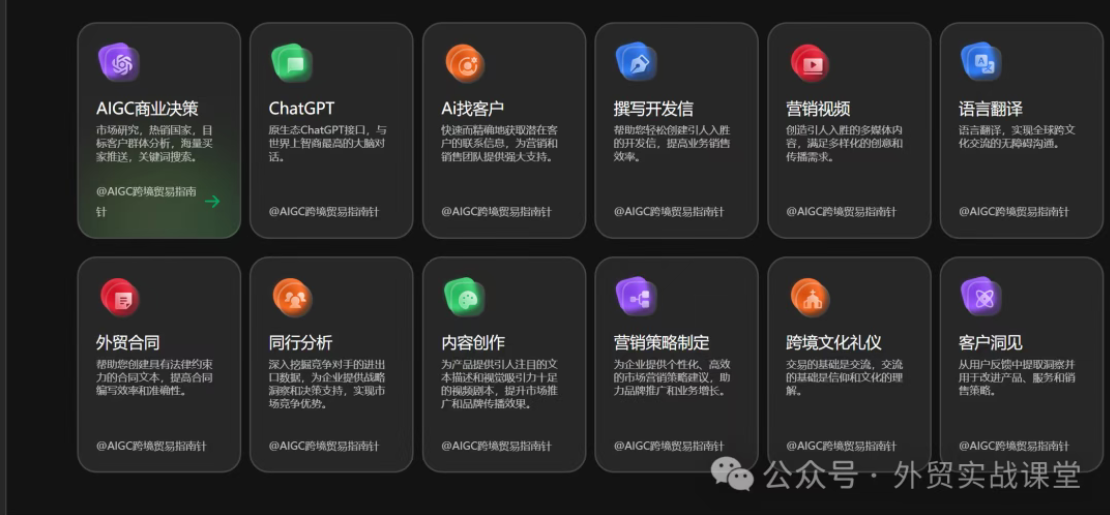简介:可以在上面写开发信,找客户,写文案,做视频,翻译,做合约,制定营销策等。